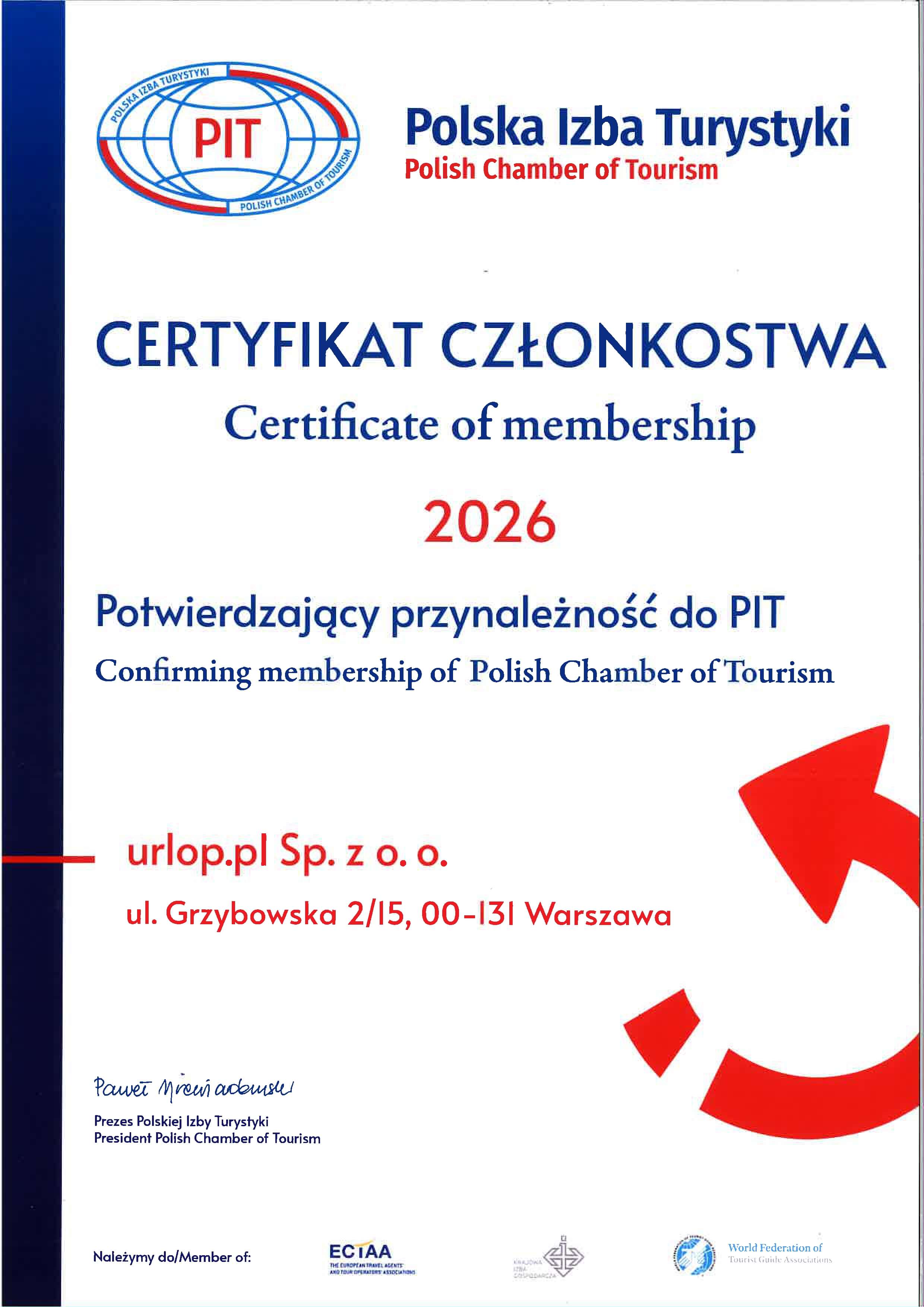 - Polska Izba Turystyki – wieloletnie członkostwo i rekomendacje, potwierdzające naszą wiarygodność i stabilność.
